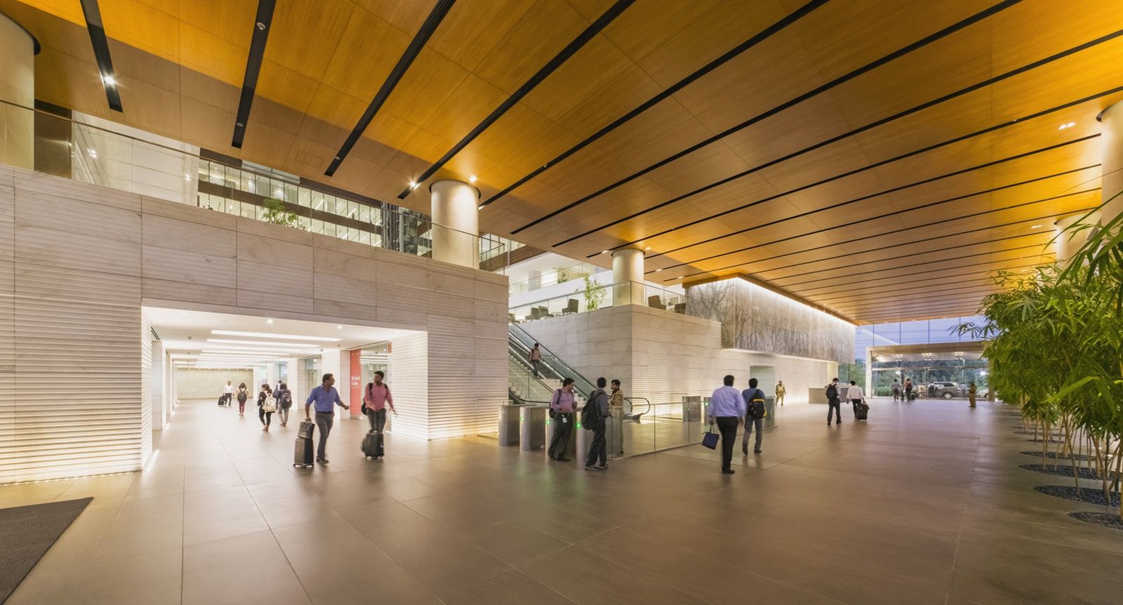 Mechanical cladding of 40mm thick. Ambaji Indian White marble and flooring in large format
