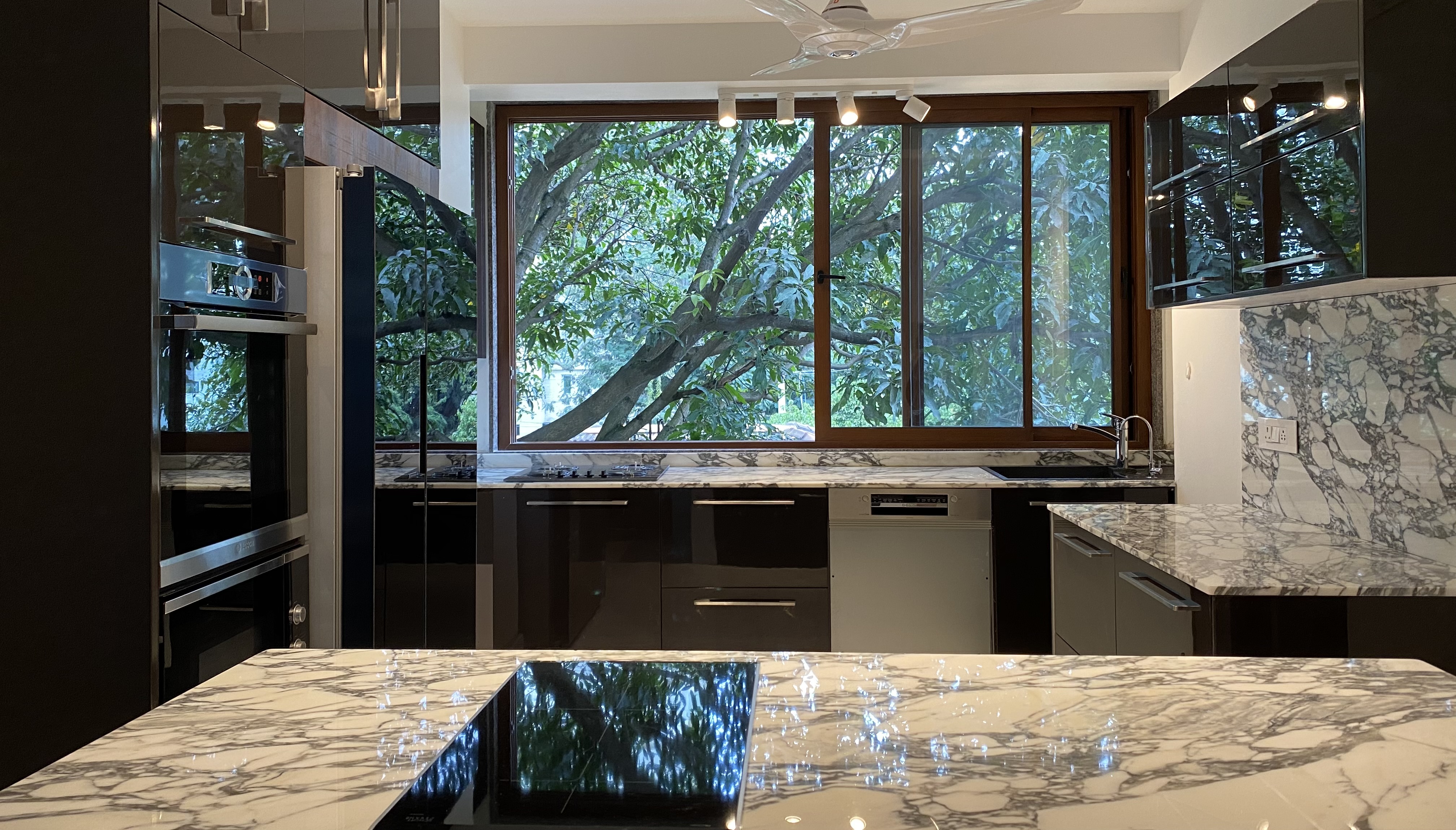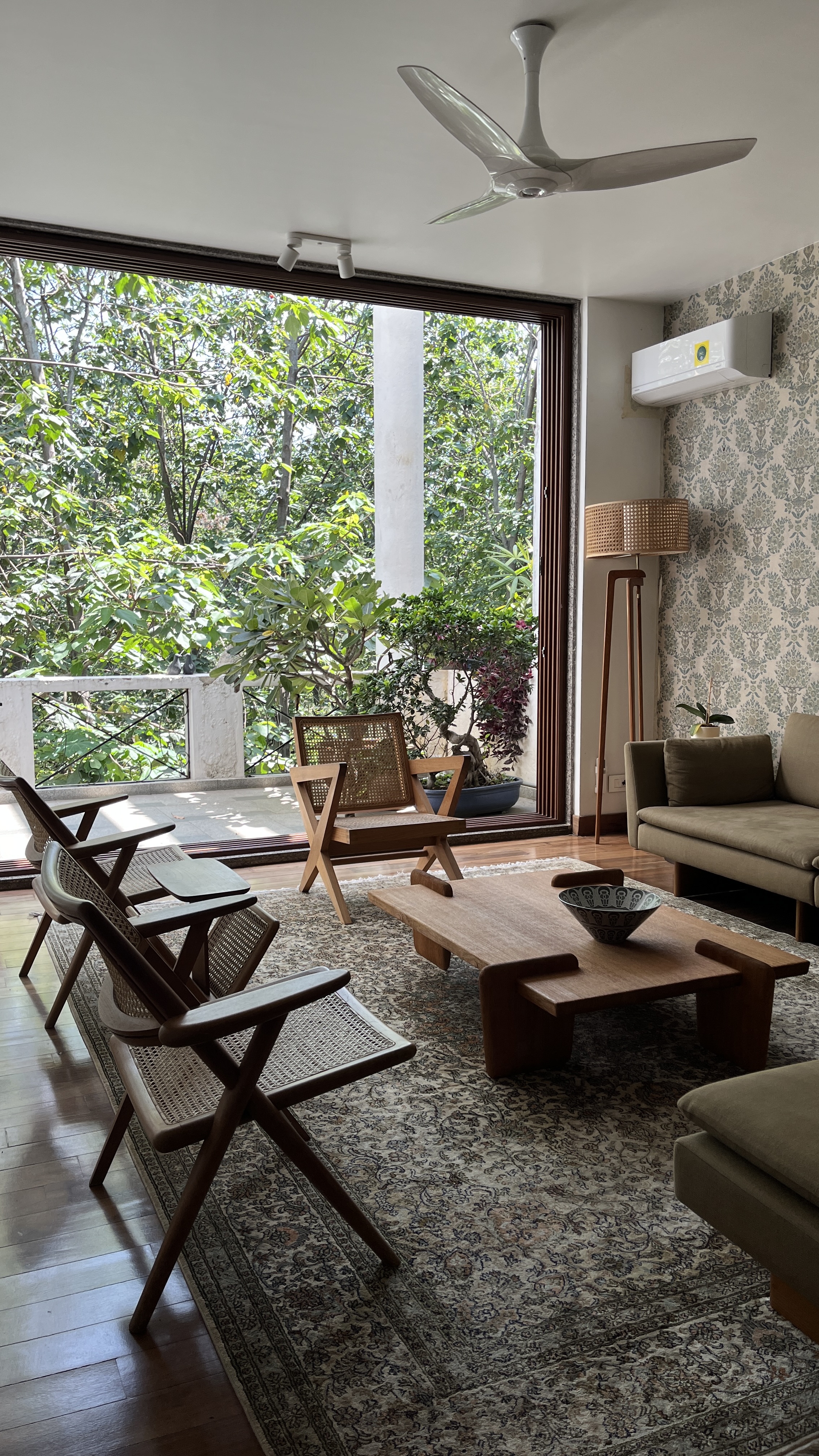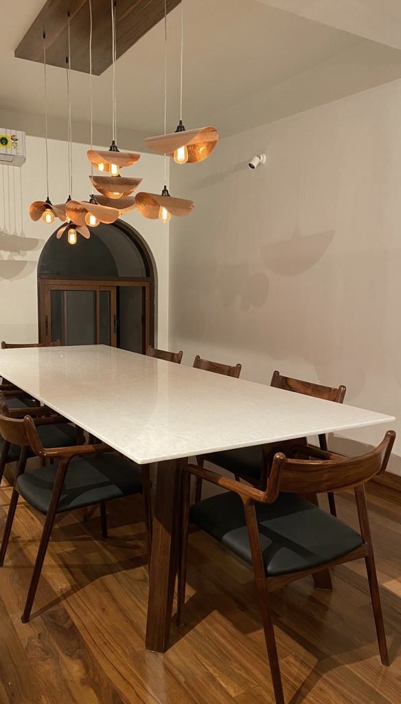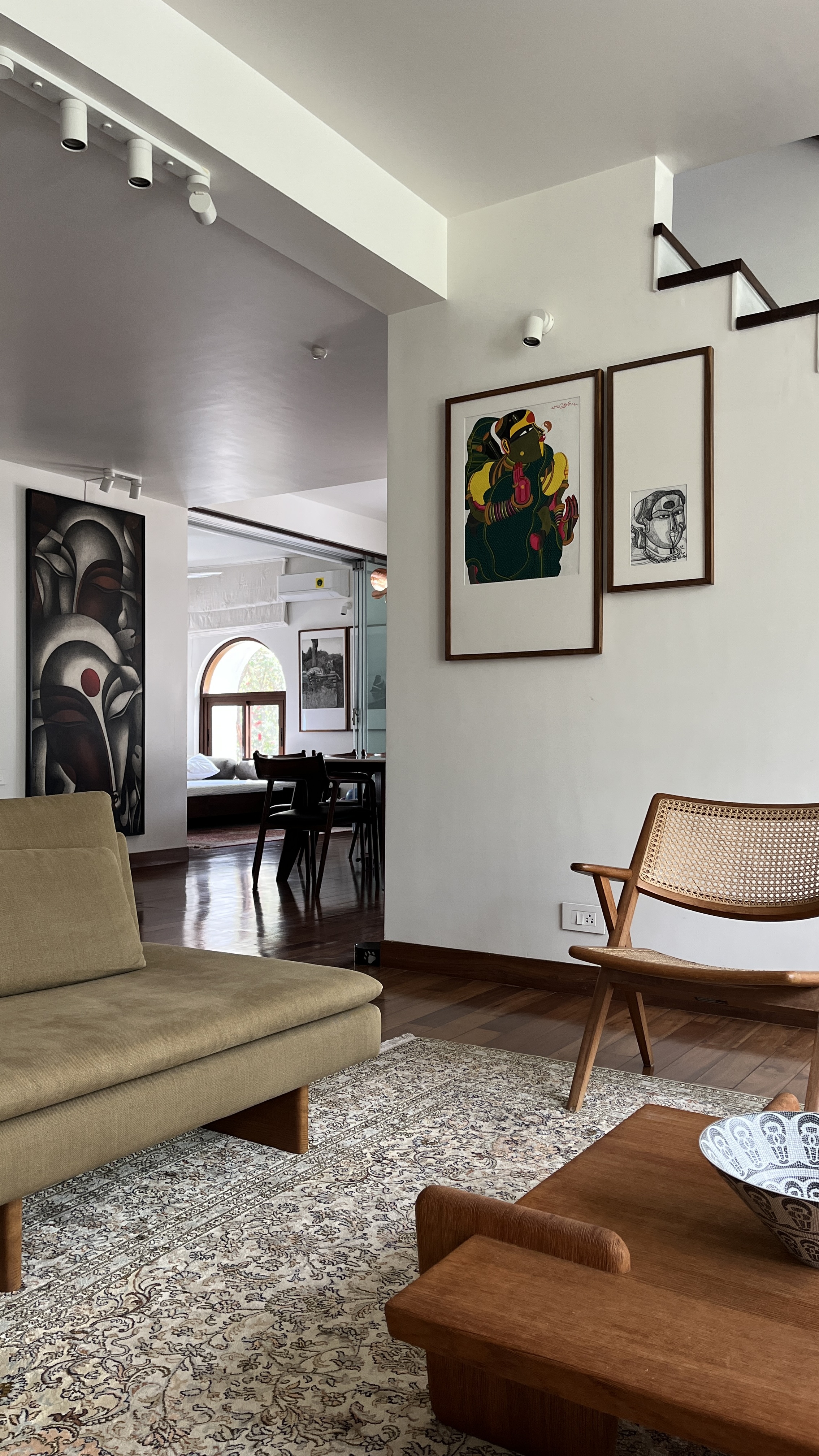 This 3,000 square feet duplex apartment overlooking a woods in central Bangalore was closed up when we began working on it. Despite the space, it felt claustrophobic. As per the client's wishes, we opened it up with French windows overlooking the woods and clean, minimalist interiors creating the perfect indoor-outdoor experience.