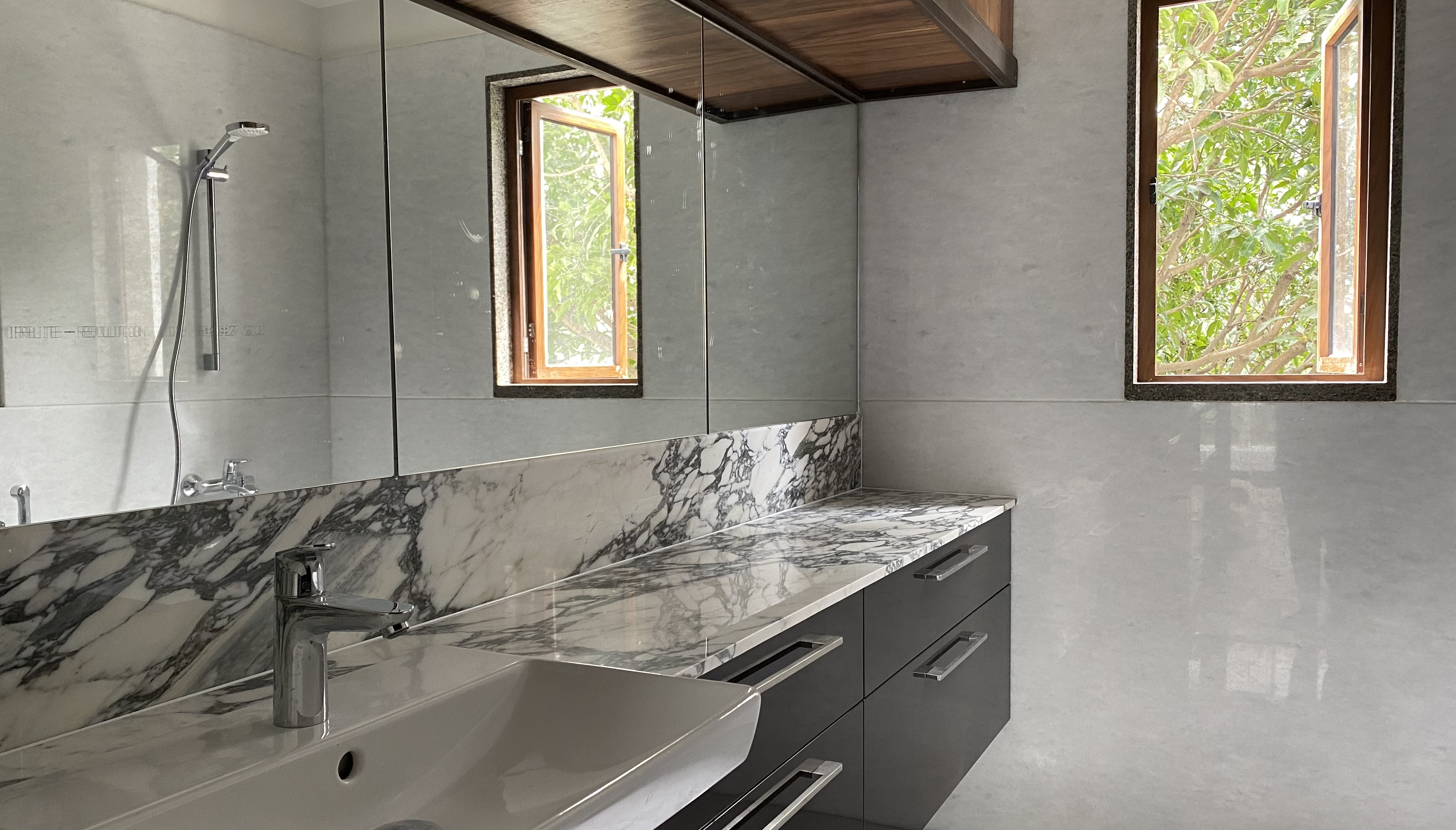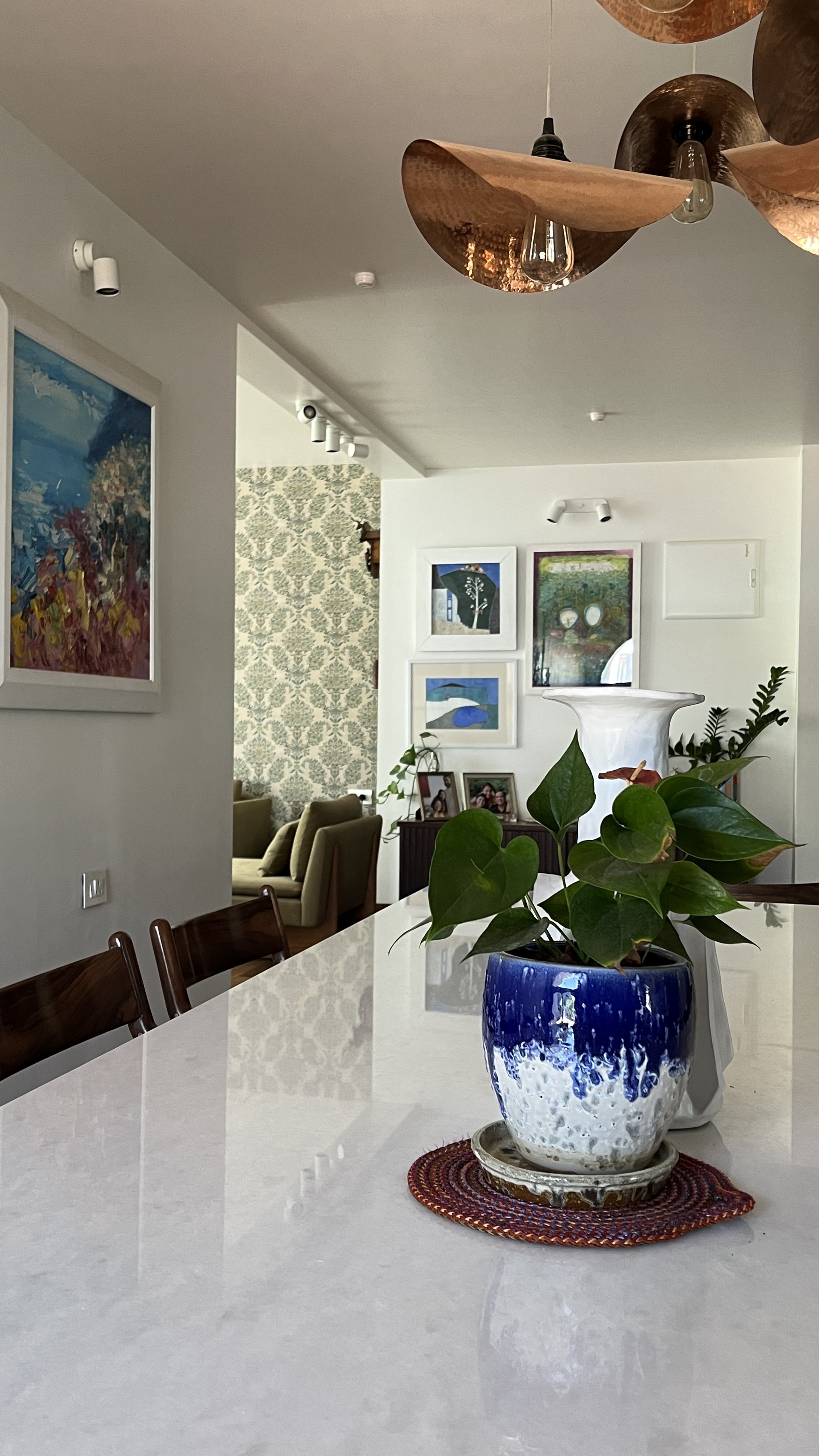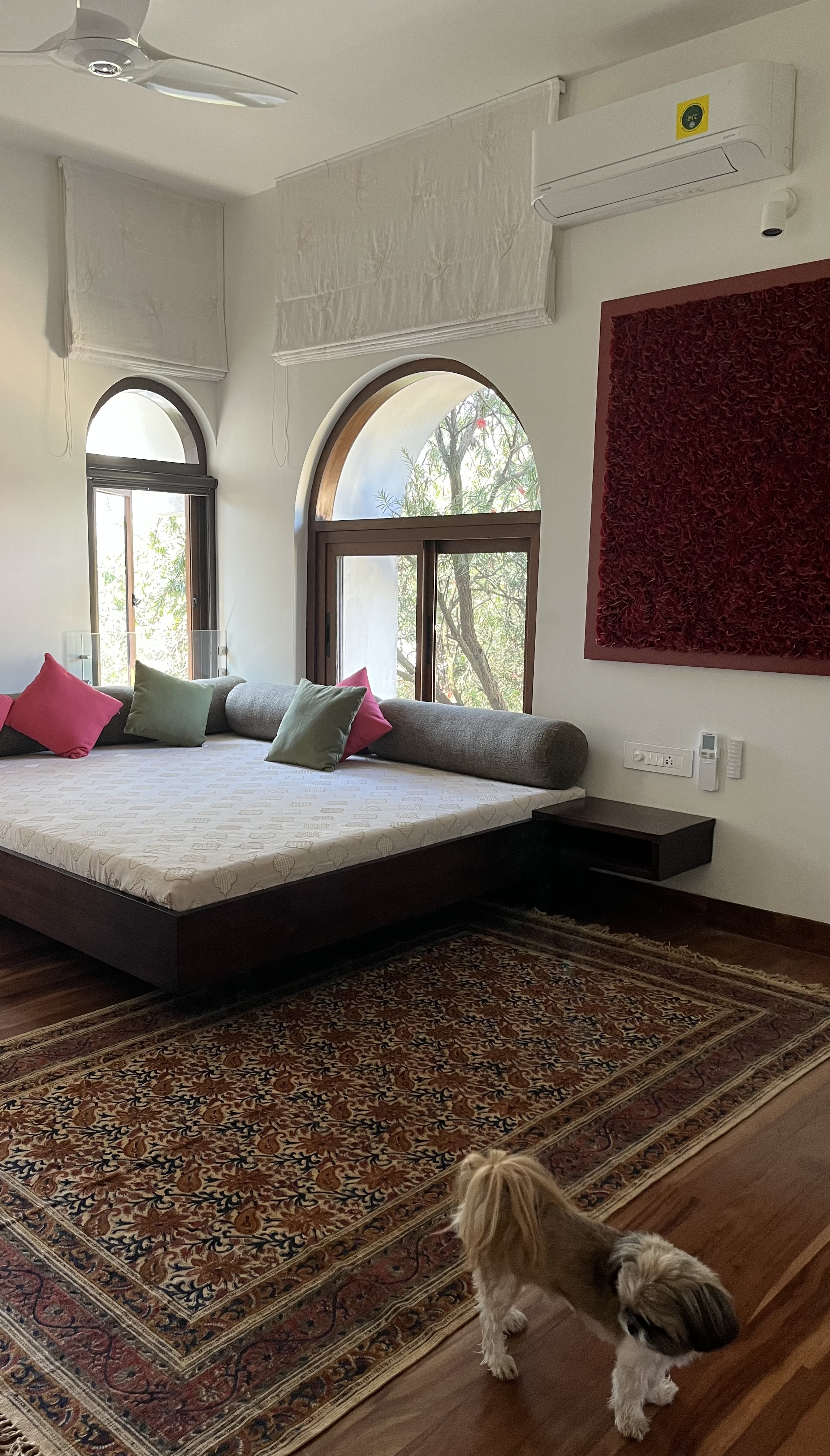 This 3,000 square feet duplex apartment overlooking a woods in central Bangalore was closed up when we began working on it. Despite the space, it felt claustrophobic. As per the client's wishes, we opened it up with French windows overlooking the woods and clean, minimalist interiors creating the perfect indoor-outdoor experience.