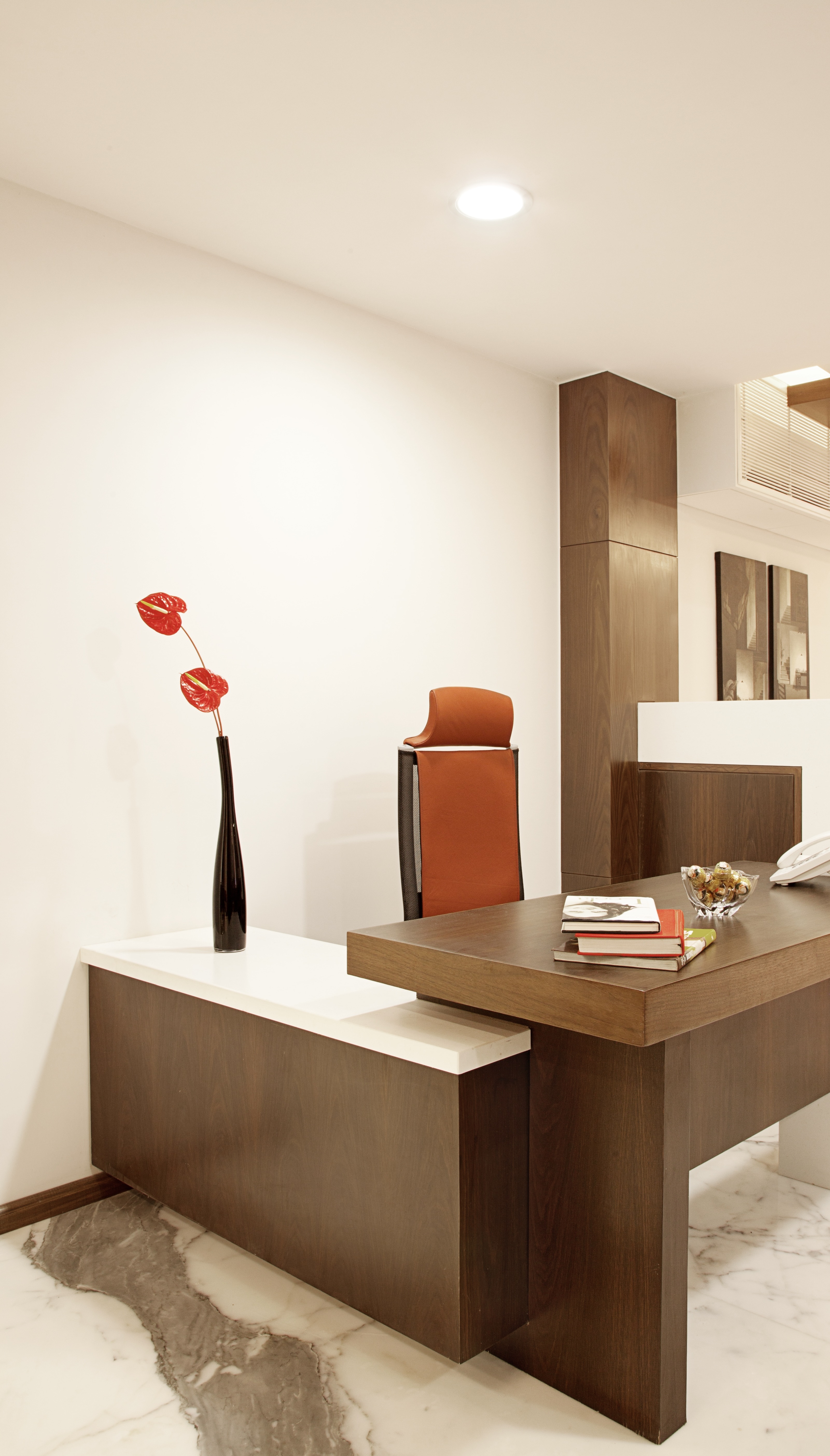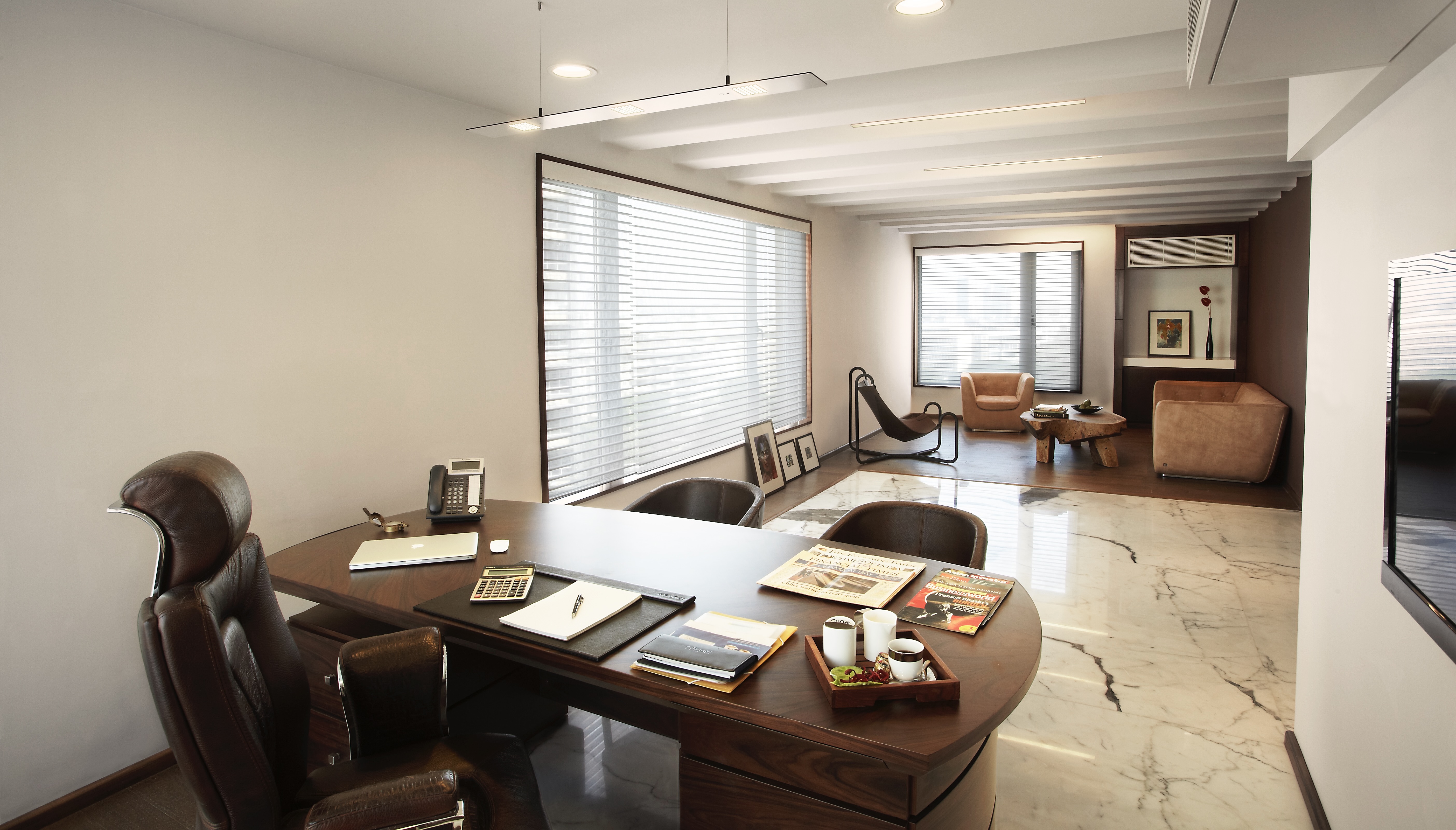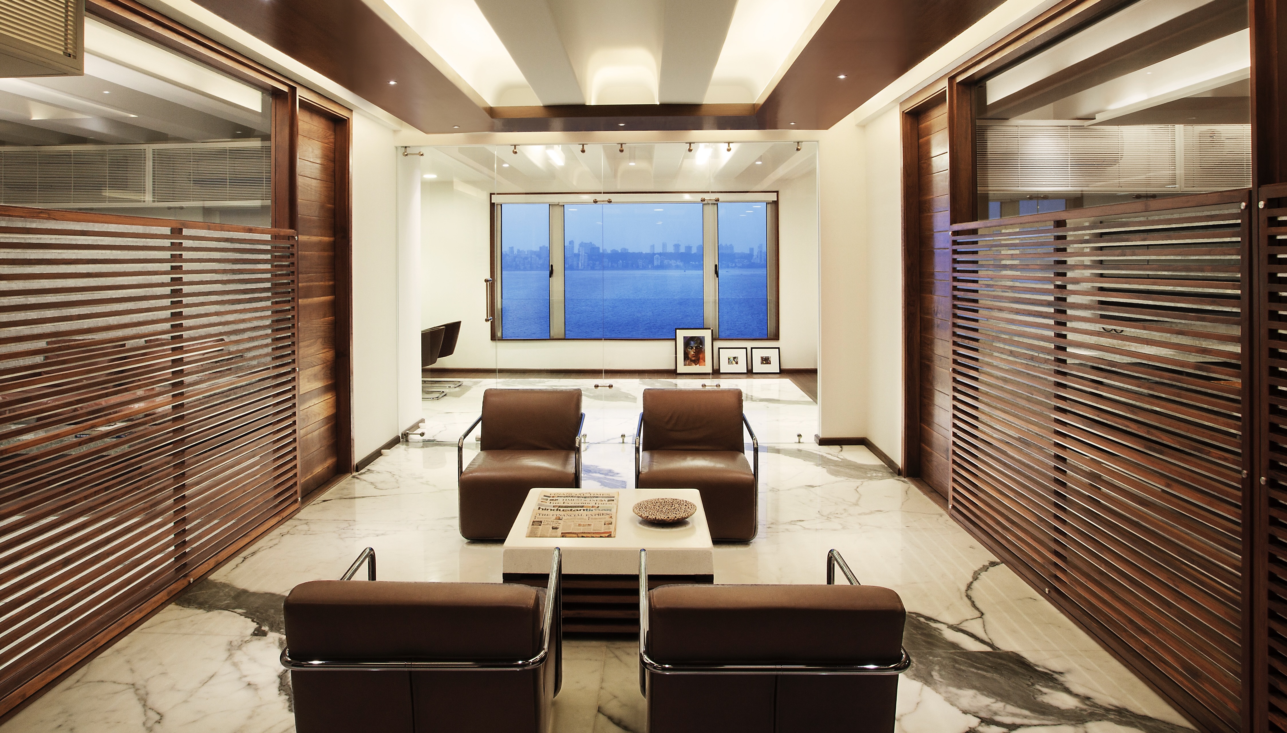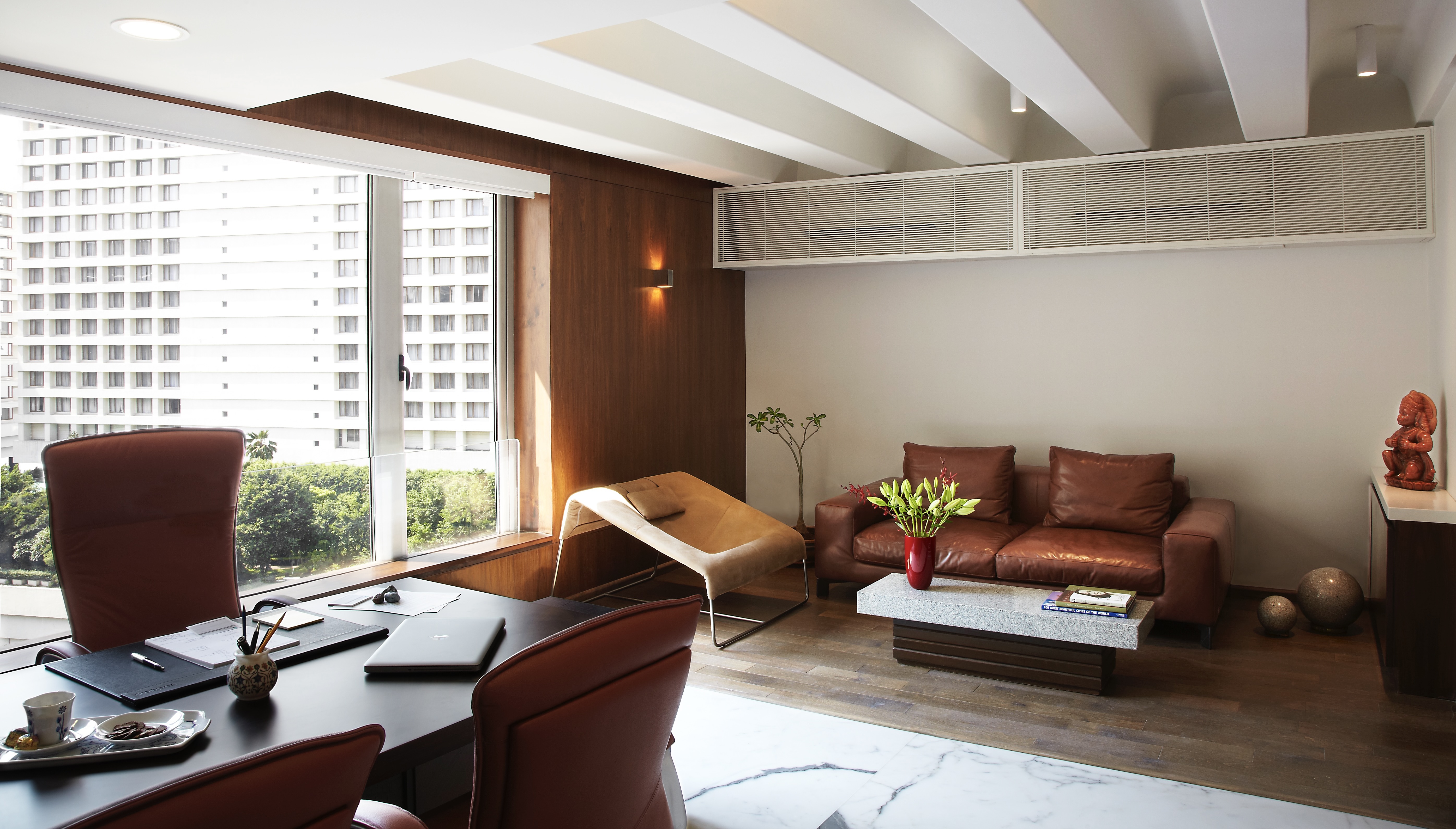 The brief from the client for this 4,000 square feet office space was simple–the office space had to be functional and yet exude a sense of luxury. We gutted the space and opened it up to ensure that every room had an expansive view of the Arabian Sea. The interplay of light and air from the outside and the leather and wood interiors created luxurious feel that was the client’s top ask.