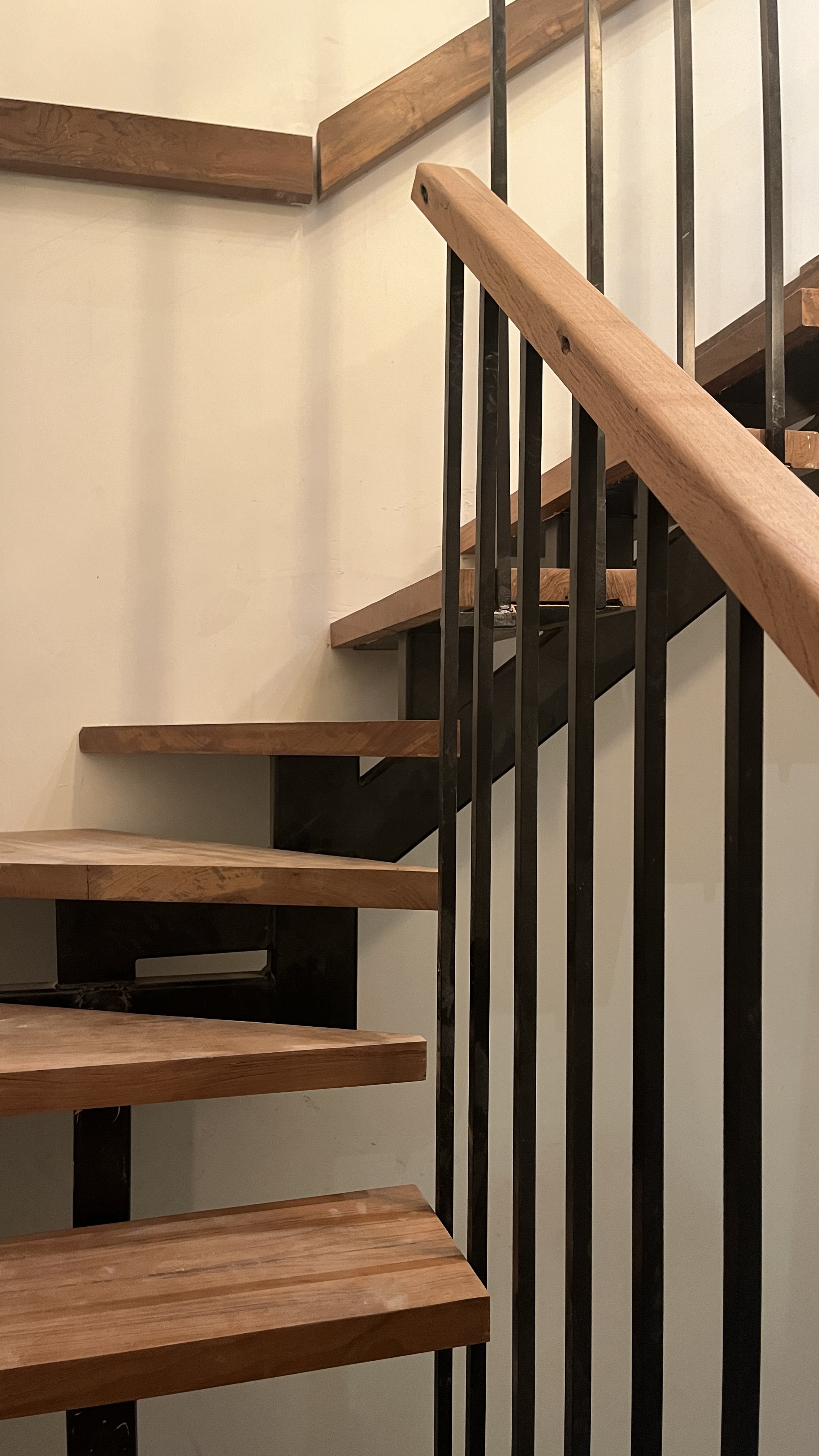 This was a 2,000 square feet bare-shell space we built from scratch. One of the most challenging aspects was constructing a staircase both easy to navigate and aesthetically-pleasing in a restricted space of 50 square feet at the entrance of the apartment. Using steel and wood, we created this little marvel.