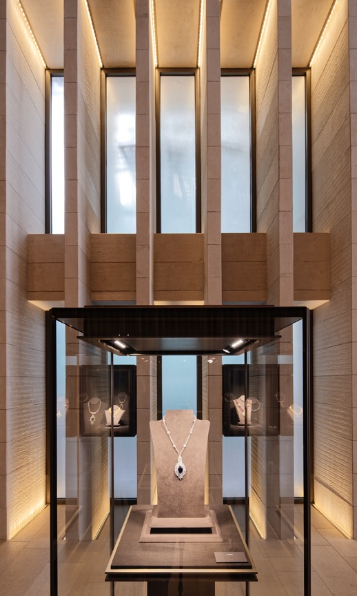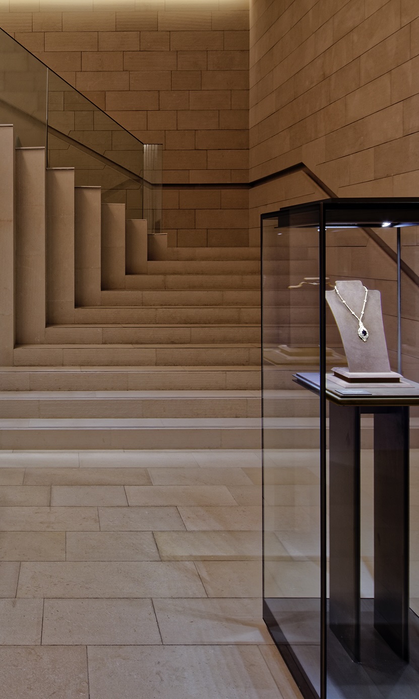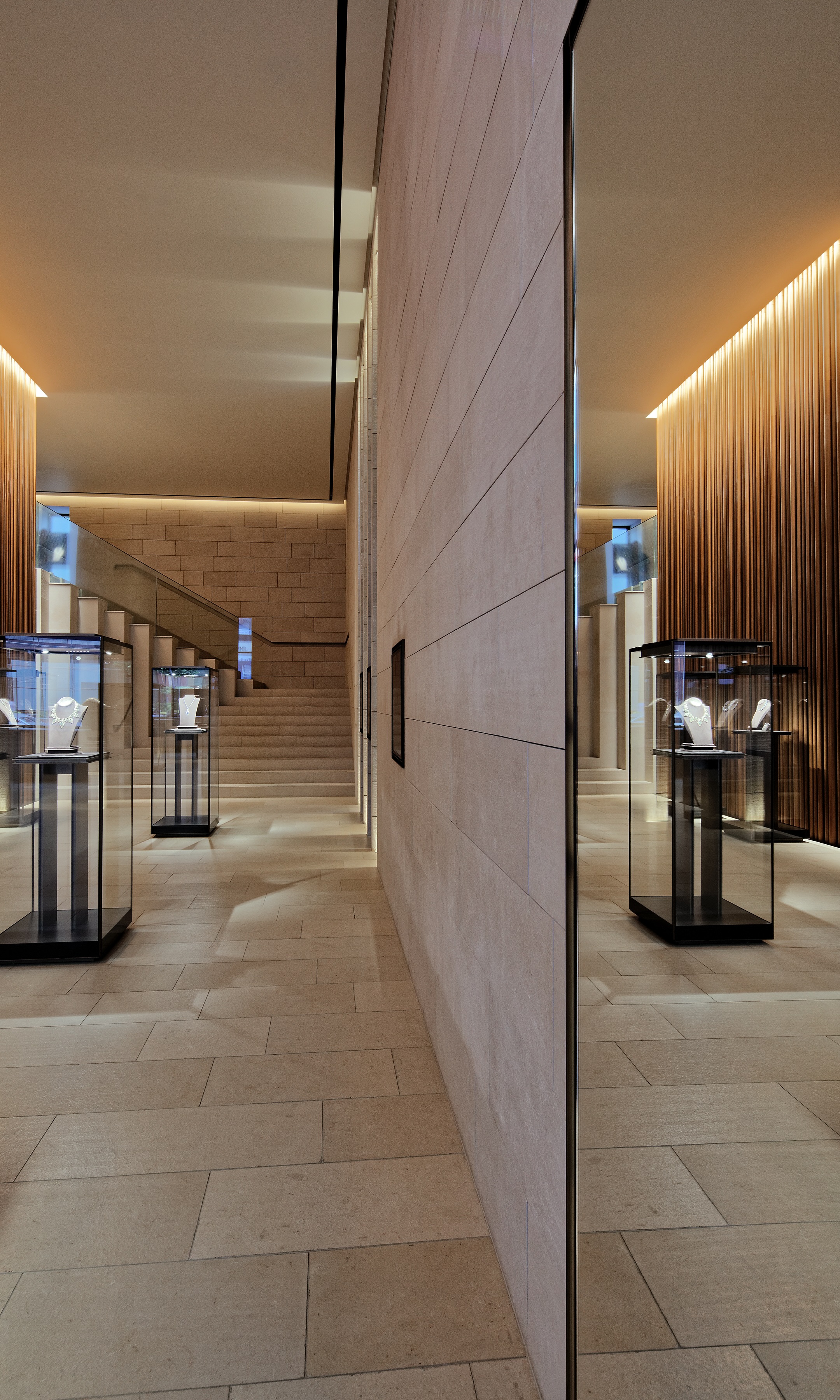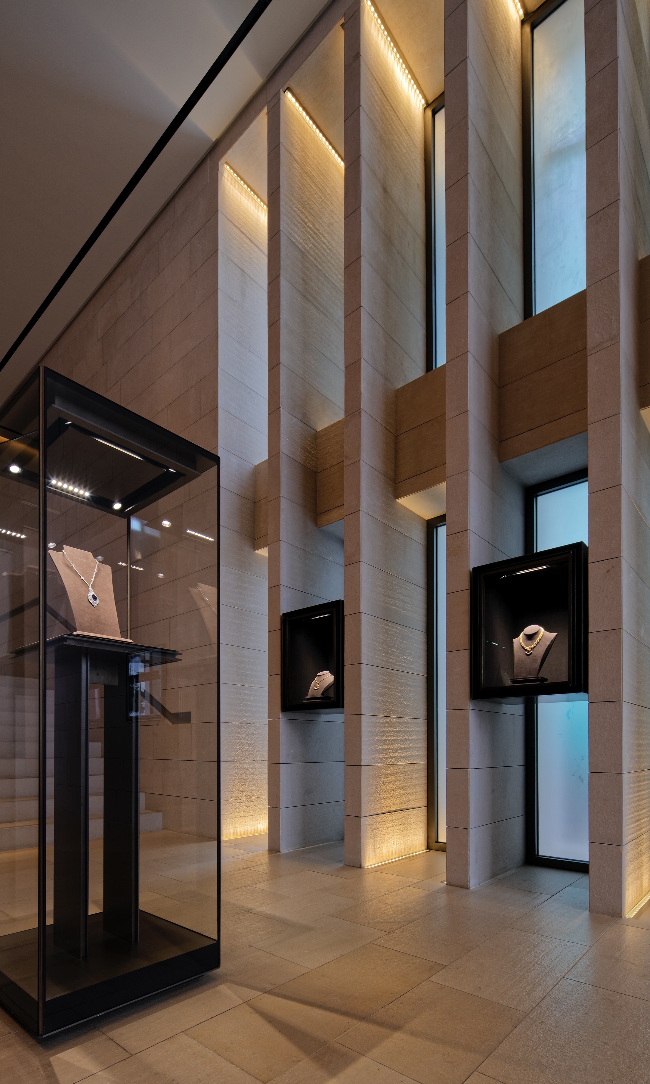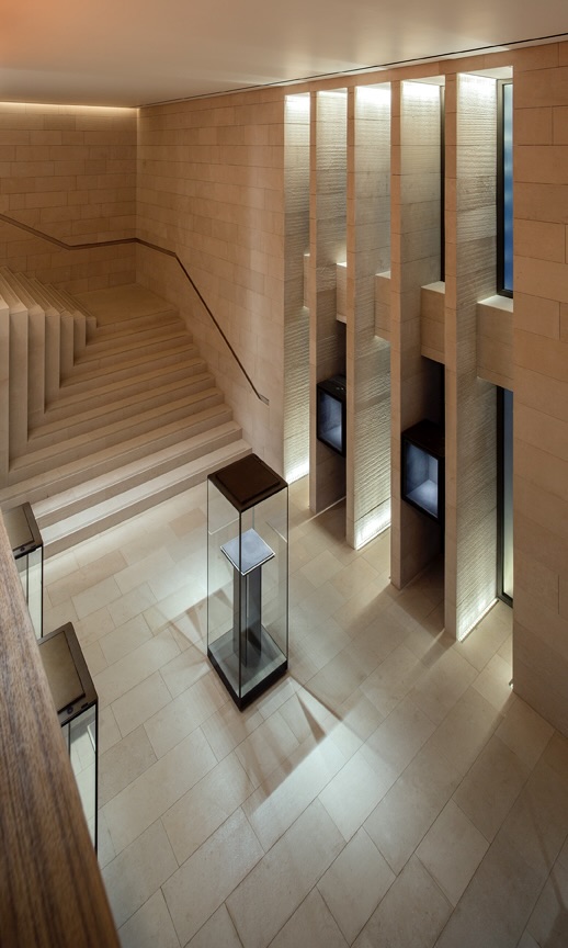 Material used for cladding and interior finishes: Portuguese Beige limestone