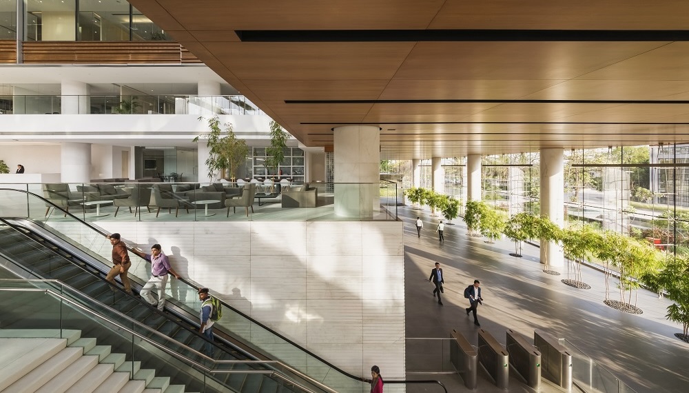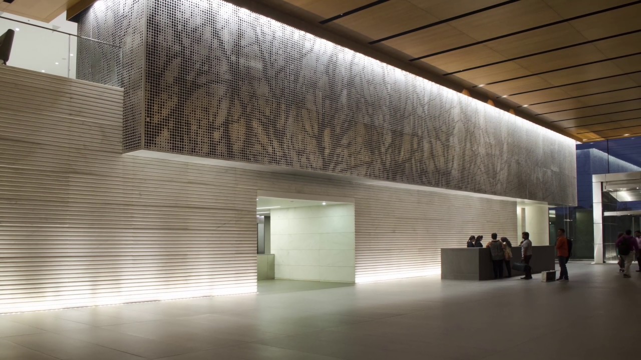 Mechanical cladding of 40mm thick. Ambaji Indian White marble and flooring in large format