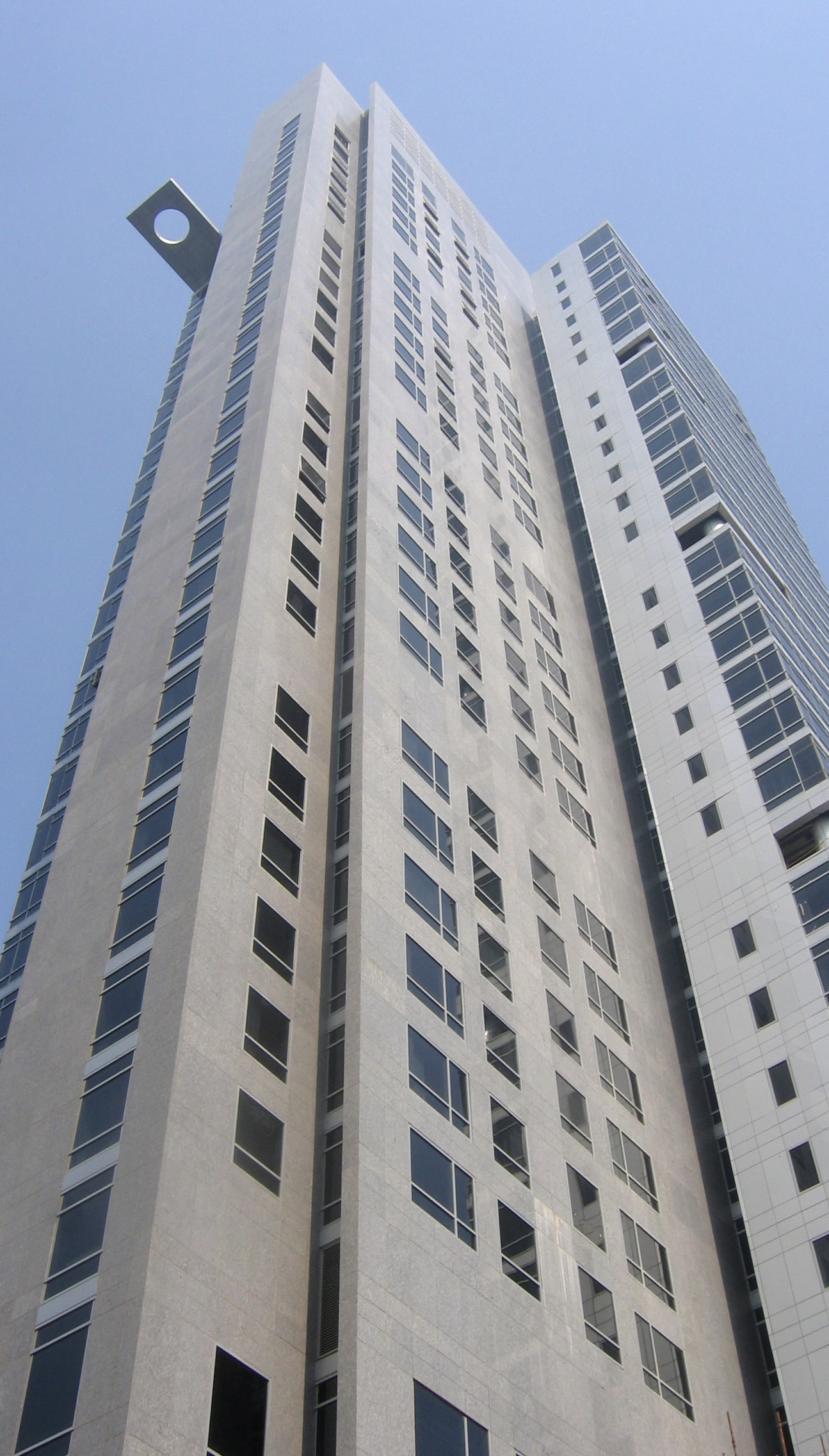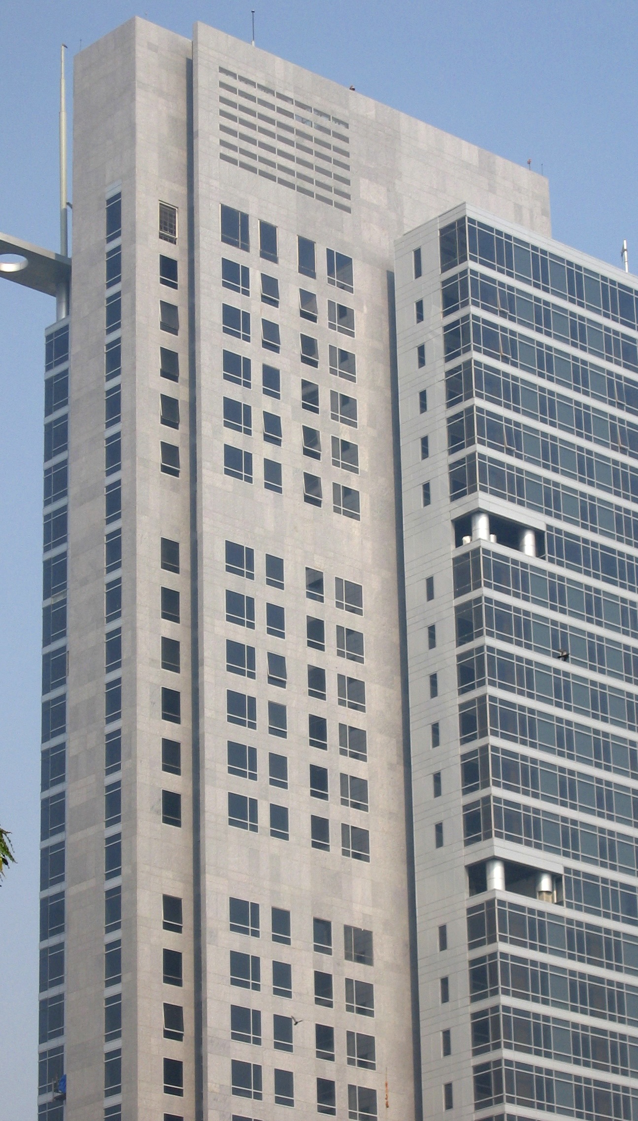11000 sqm of ventilated façade cladding up to the height of 130 metre with 30 mm thick Lavender Blue granite from Orissa, India. In addition to the façade, interior finishes were also provided with a Turkish cream marble.